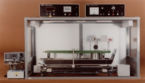 The D.O.S oil and C.S.O oil used for tinplate, aluminum strip, etc., due to their polar base, spread out on the water surface into a certain amount of monomolecular film. The SOM-A type oil coating amount tester utilizes this characteristic of the oil to transfer the oil on the surface of tinplate and aluminum strip onto a clean water surface. By measuring the area of the monomolecular film of the oil, the oil coating amount is determined. (See the figure below)